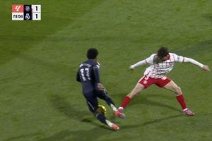在赫罗纳1-0进球前的攻势中,姆巴佩也曾投诉犯规。姆巴佩在遭遇莫雷诺明显的推搡和膝盖绊人,接触其左腿后提出抗议。