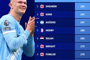 下一篇: 哈兰德以111场比赛的效率成为英超历史第35位达成百球里程碑的球员。