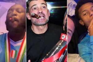体育资讯12月23日讯 在那不勒斯夺得意大利超级杯冠军后,卢卡库、内雷斯抽雪茄庆祝。