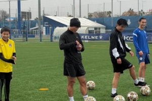 体育资讯12月26日讯 博主“稀盐酸足球频道”晒图,泰山球员谢文能现身西班牙人训练基地。