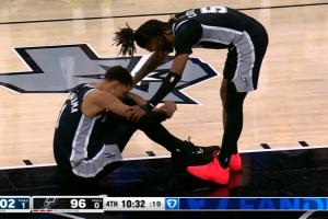 GIF-文班抢篮板落地受伤了 像是过度伸展啊……