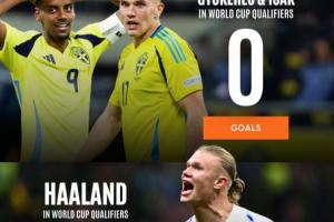 24直播网11月18日讯 挪威世预赛8战全胜,哈兰德独进16球领跑射手榜,锋线豪华。而同组瑞典表现低迷,5战仅1分,多名高价前锋颗粒无收。不过,瑞典凭借欧国联小组第一获得世界杯附加赛资格,仍保留晋级希望。