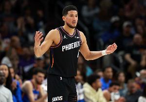 上半场,太阳后卫布克表现不理想,出场19分钟9投仅3中,三分1中0、罚球7中7拿到13分2篮板4助攻,有2失误,正负值-11。