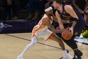 GIF-东契奇造成沃克三分犯规 老鹰挑战失败