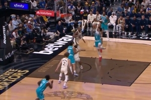 下一篇: 坎宁安击地妙传助攻,霍兰接球后高高跃起,以一记势大力沉的隔扣完成进攻,并造成犯规成功打成2+1。