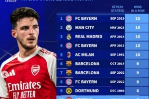 24直播网01月21日讯 阿森纳本赛季欧冠豪取7连胜,跻身历史连胜榜并列第十。该榜单显示,拜仁以15连胜高居榜首,曼城与皇马以10连胜并列第二。众多欧洲豪门均曾创造连胜佳绩,展现了欧冠赛场的激烈竞争。