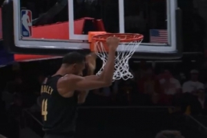 下一篇: 布里奇斯底线突破,强势起飞穿越防守,双手暴力劈扣一飞冲天!