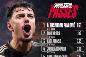 24直播网01月23日讯 拜仁球员帕夫洛维奇在欧冠2-0胜圣吉罗斯的比赛中,以151次成功传球刷新队史单场欧冠纪录,超越克罗斯(147次)、阿隆索(135次)等前辈,展现强大中场控制力。