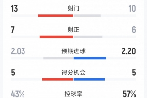 控球率:43%-57%