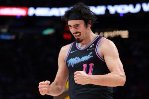 本场比赛,热火球员哈克斯在队友进攻端状态一般的情况下,里突外投加串联打得很是高效。