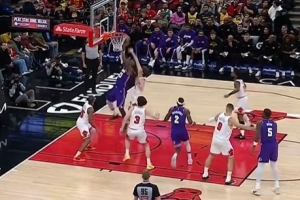 下一篇: 詹姆斯突然加速,远距离起跳,单臂滑翔完成暴力劈扣,这速度、这距离、这观感太震撼了!