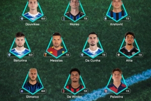 中场:巴图里纳(科莫)、梅西亚斯(热那亚)、达库尼亚(科莫)、阿塔(乌迪内斯)