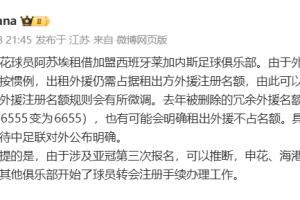 体育资讯01月28日讯 申花今日官宣外租外援阿苏埃至莱加内斯。德转中国区管理员朱艺谈到了新赛季的外援注册政策。