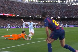 西甲裁判评议结果:霍安扑救动作无犯规,不判点球;巴萨获得的任意球为误判。